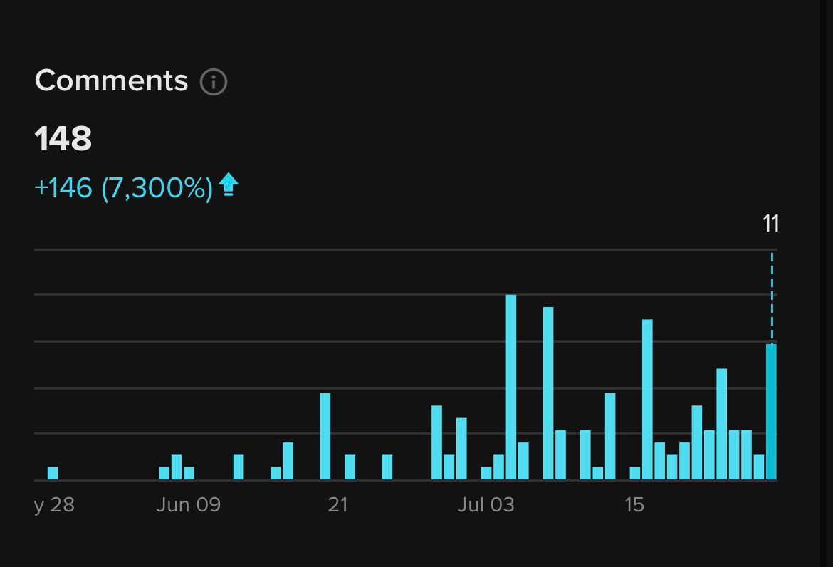 The Frankie's Comics TikTok account was active for around 60 days before the account was shut down and other business endeavors were pursued. The data below shows a positive and steady amount of growth in comments, views, and likes/follows as I would analyze the data weekly and used viral trends combined with a niche hashtag strategy and bonding with the comic book niche community.